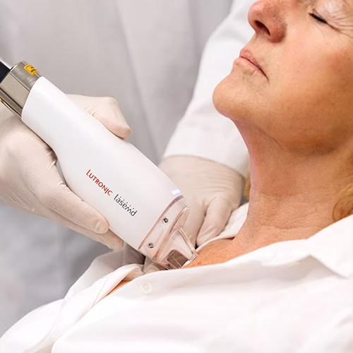 Hochmodernes Laser­system zum Einschleusen konzen­trierter Wirkstoff-­Seren (Cosmeceuticals) mit breitem Behand­lungs­spektrum von Narben, über die Glättung feiner Falten bis hin zu Pigment­verschie­bungen (Melasma u.ä.) und der Präven­tion von Alterungs­zeichen.